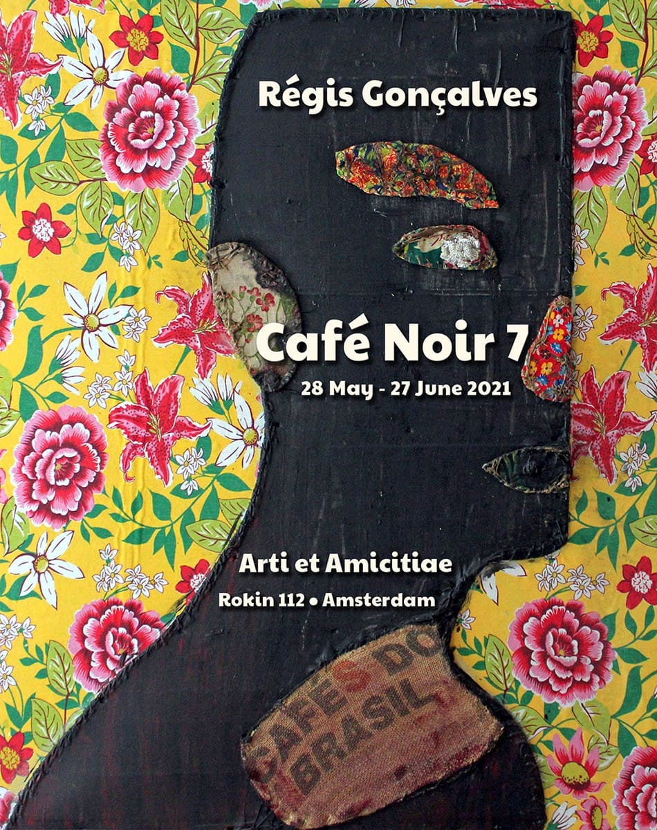 From 28 May to 27 June 2021, Régis Gonçalves presented his exhibition Café Noir 7 at Arti et Amicitiae in Amsterdam. After months of lockdowns and restrictions, the exhibition offered a welcome opportunity to experience art once again in a physical space. The presentation brought together visual art and performance in a setting reminiscent of a café where stories and encounters took centre stage.
